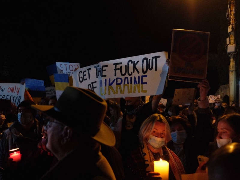 Large crowd gathers in front of Russian Embassy in solidarity with Ukraine