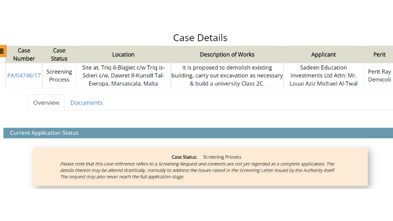 Sadeen Education Investments Limited was given two large tracts of public land in 2015 — some 13,000 square metres in Bormla and 31,000 square metres in Zonqor, Marsascala — to develop a €115 million university campus.