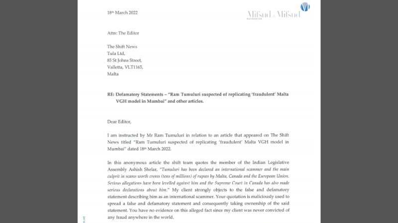 Ram Tumuluri sends legal threat to The Shift objecting to being called ‘an international scammer’