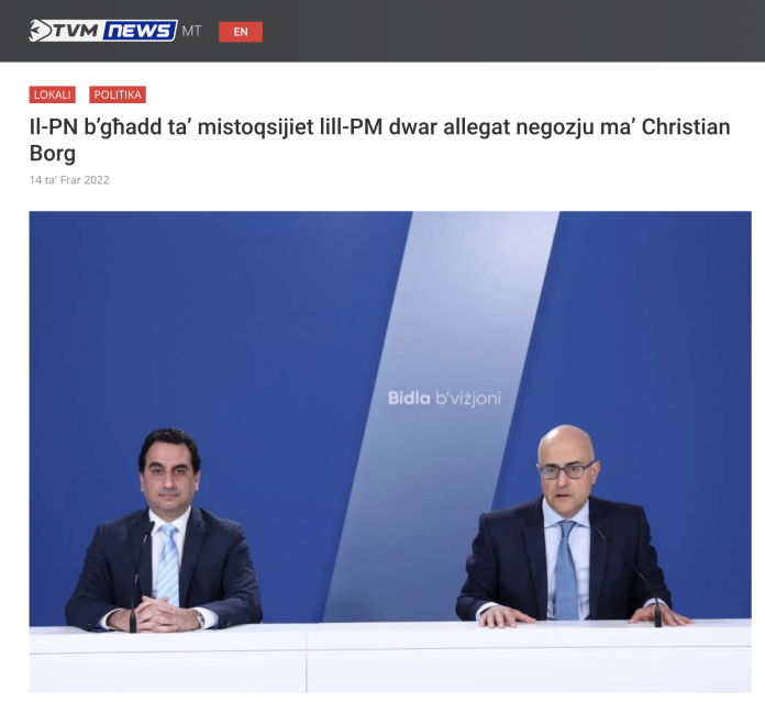 And the results that do come up offer very little information. For example, a reference to Robert Abela’s property deal with Christian Borg on TVM is via a news item describing how the Nationalist Party has many questions for the prime minister about his alleged deal with Christian Borg.