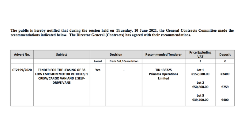 The tender, issued through the government’s Department of Contracts on behalf of Transport Malta, was a call for the leasing of a total of 38 low-emission vehicles, one cargo van and two ‘self-drive vans’ from Princess Operations Ltd, revealed by The Shift on Wednesday.