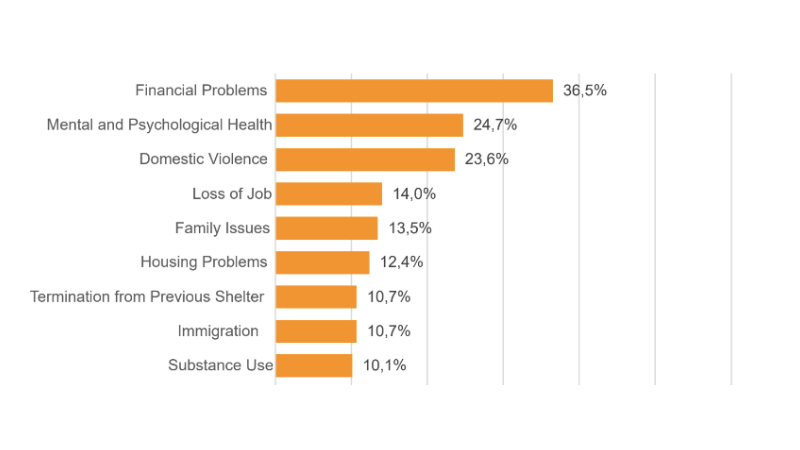 Meanwhile, the research also found that the leading cause of homelessness for the majority of residents (36.5%) is ‘financial problems’, followed by ‘mental and psychological health’ (24.7%) and ‘domestic violence’ (23.6%). For females,‘domestic violence’ is the leading cause of homelessness, while, in the case of males, ’financial problems’ (26.3%) is the leading cause.