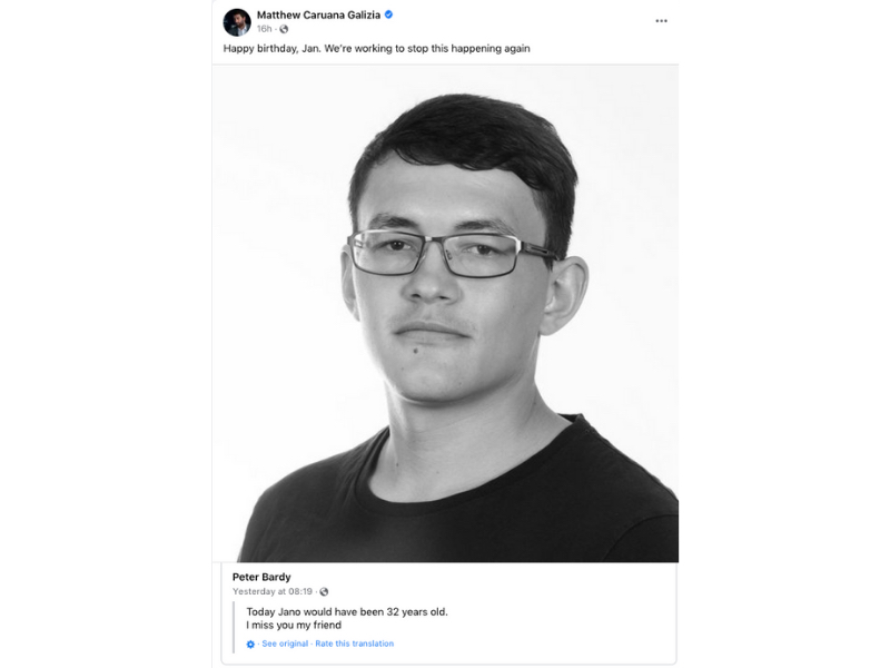 “Happy birthday, Jan,” Matthew Caruana Galizia said on Facebook earlier today. “We’re working to stop this happening again.”