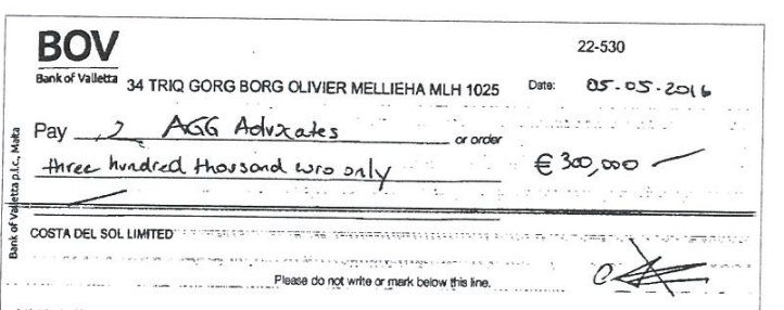 The court documents show that payment was affected by Curmi, through a cheque on 5 May of that year, long before most of the invoices were issued by the justice minister and his partners.