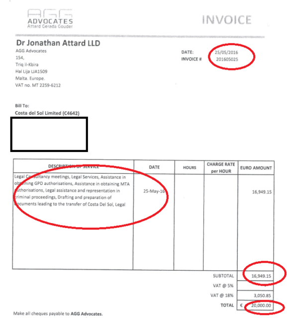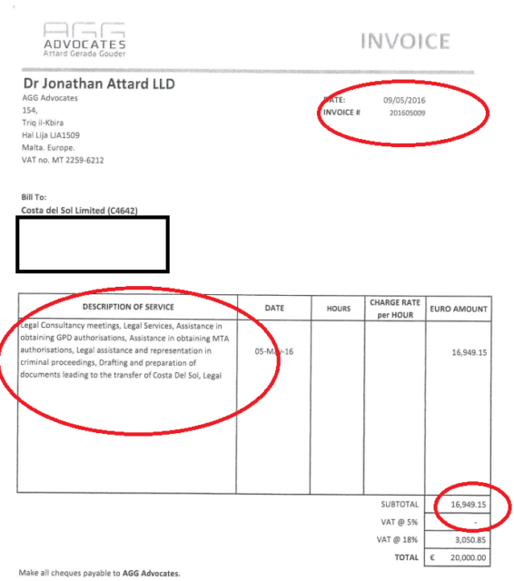 According to the same invoices, apart from the claimed ‘legal services’, the Justice Minister charged Curmi for his assistance “in obtaining GPD (Lands Authority) authorisations” and “Malta Tourism Authority authorisations”.