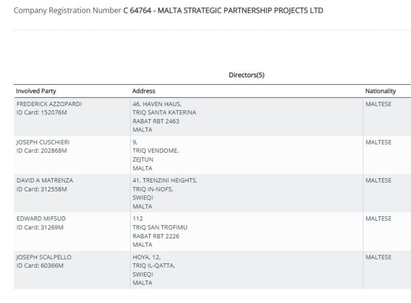 Apart from Cuschieri, the current Board of Directors of MSPP includes Fredrick Azzopardi – who left Infrastructure Malta to work for James Caterers soon after road projects were removed from Ian Borg’s portfolio – as well as David Matrenza, Edward Mifsud and Joseph Scalpello.