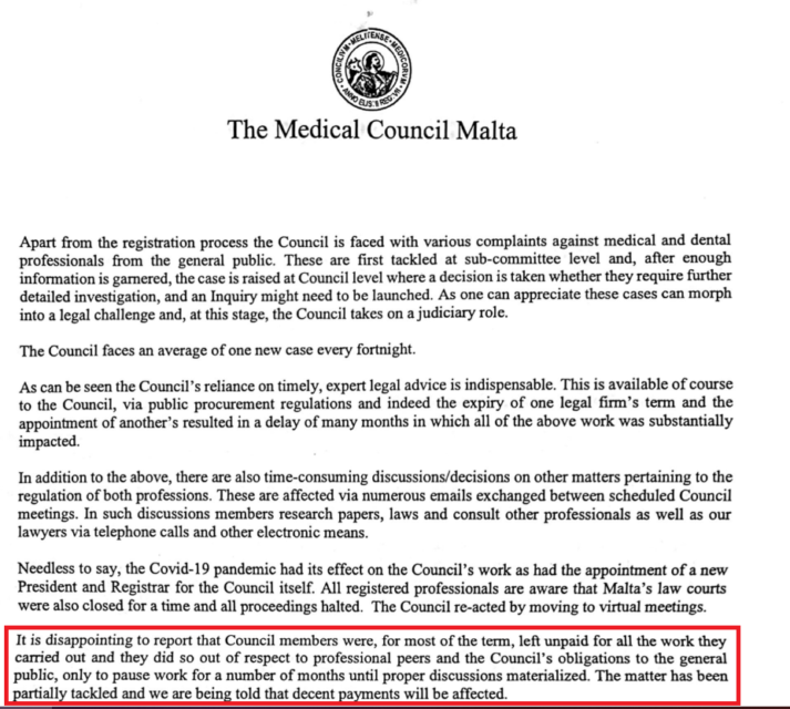 The regulator of the medical profession in Malta, The Medical Council, has sent an unprecedented and “bizarre” letter to all Maltese-registered doctors and dentists, complaining that it can’t cope with all the work it has, that it’s severely underfunded and above all, that its members are either not being paid by the government or are being underpaid for “the long hours” they spend dealing with council issues.