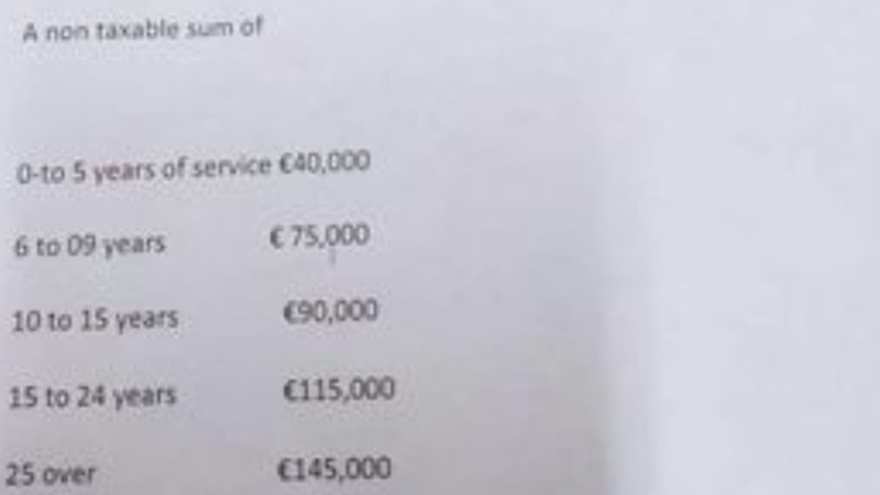 The Shift is informed that the government is offering a golden handshake of between €40,000 for those with less than five years’ experience to €145,000 for those who have been on the company’s books for more than 25 years.