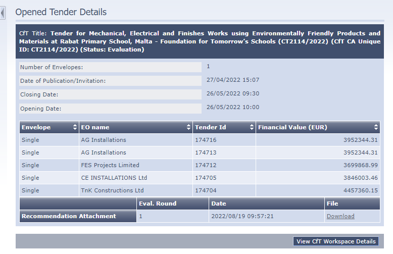 A tender awarded to a company that placed a bid over €250,000 higher than the cheapest compliant bidder for mechanical, electrical and finishing works at the Rabat Primary School will see the Foundation for Tomorrow’s Schools forking out over a quarter of a million extra euros for the school’s completion.