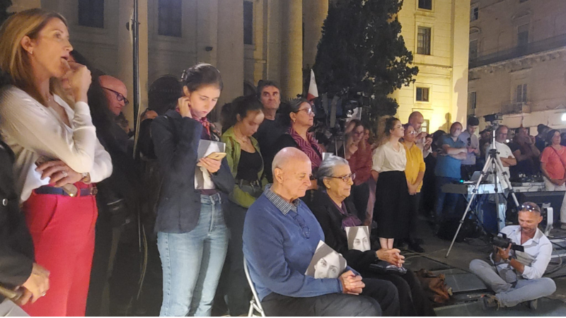 Earlier in the afternoon, hundreds of people gathered with Caruana Galizia family members at the murder site in Bidnija for a commemoration, amongst who were European Parliament President Roberta Metsola and anti-mafia activist Maria Falcone, as well as former Nationalist Party leader Simon Busuttil and MEP David Casa.