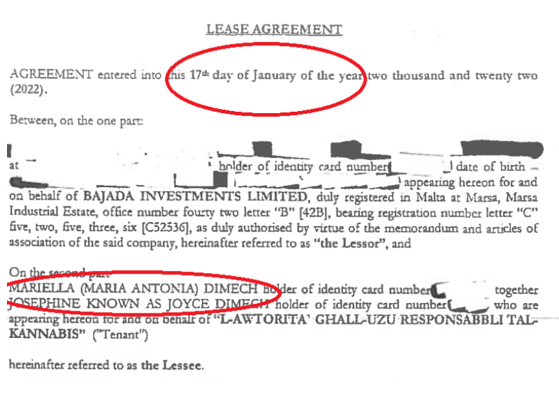 Dimech signed a contract with Bajada Investments Ltd for the five-year lease – through direct order – of an entire floor of a commercial building in Marsa on 17 January 2022. But her own €82,000 a year contract to head the authority was only signed on 20 January 2022.