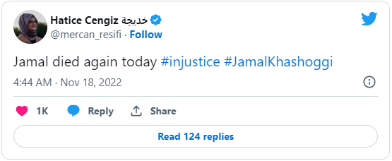 Cengiz took to Twitter after the State Department’s court filing to say: “Jamal died again today”.
