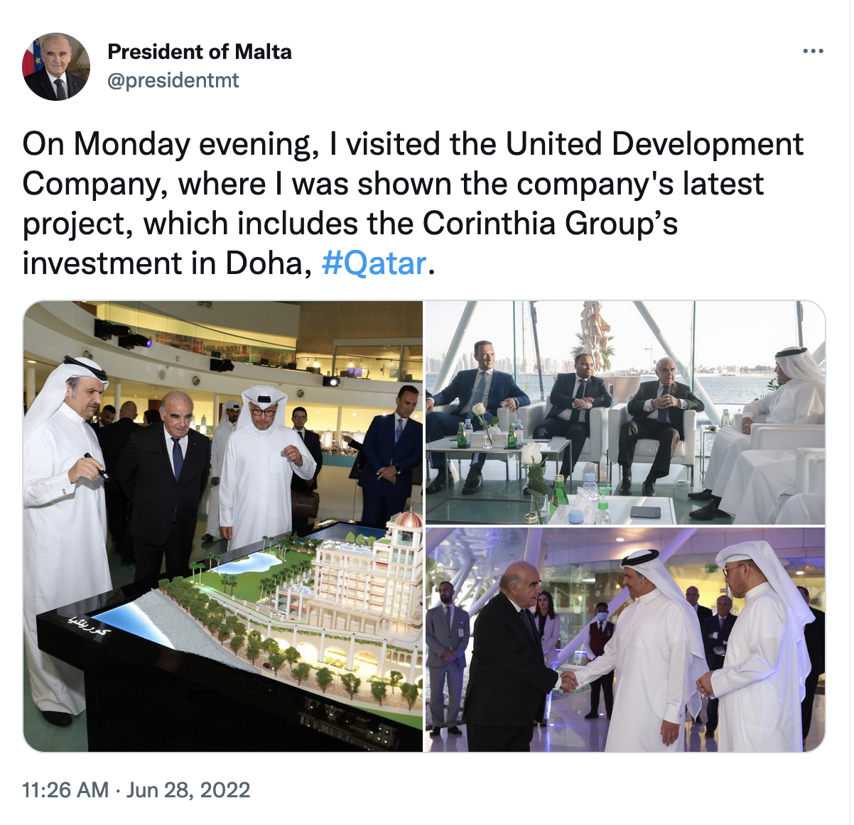 The President even visited Corinthia’s partner in its Qatar projects, effectively offering an endorsement and promotion by Malta’s Head of State.