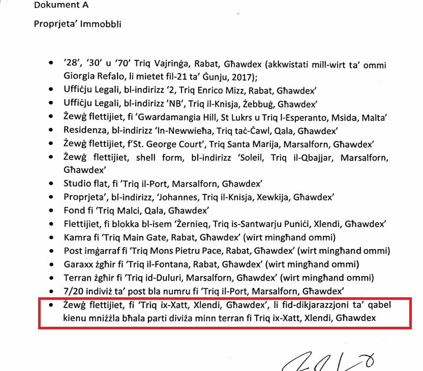 He has declared being the owner of some 22 different properties that are mostly in Gozo, including several apartments on the rental market.