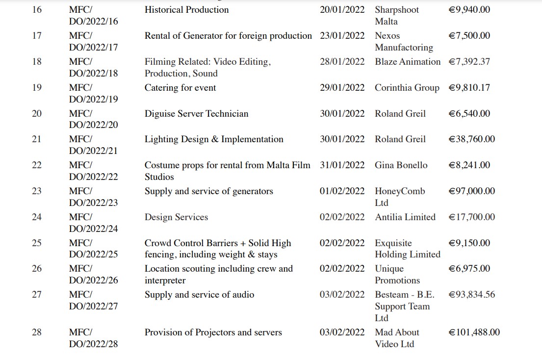 An analysis of the scantily described direct orders issued by the Malta Film Commission over the first three months of last year, which coincided with the electoral campaign, shows the Film Commission’s main beneficiary companies were those that supplied the Labour Party with stages, lights, sound, LED screens and other props for its multi-million-euro election campaign.