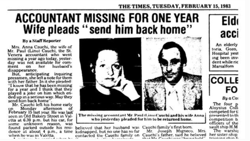 Two months later, on the morning of 14 February 1982, the 32-year-old accountant left his home in Santa Venera for his office in Valletta and never returned.