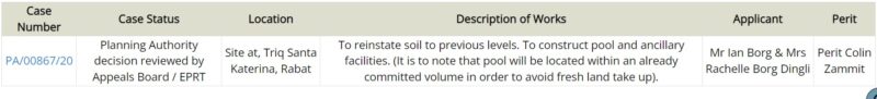The saga dates back to 2018 when Borg first applied to build his pool in the field. Although it was against planning policies, the Planning Authority nevertheless issued the permit, which was later confirmed under appeal by the Environment and Planning Review Tribunal.