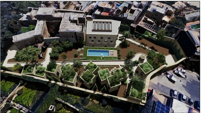 The plans are for the protected palazzo to be turned into a luxury boutique hotel with independent living cabanas in its historic gardens.