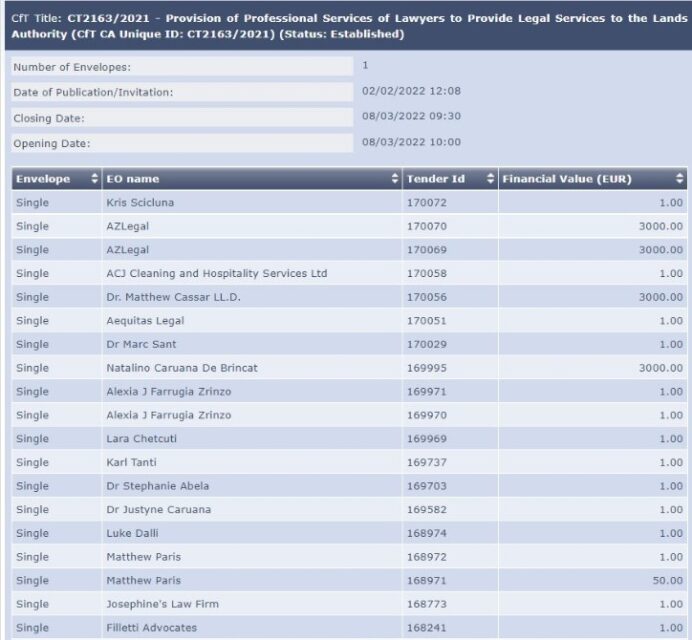 Politically appointed lawyers who have already been working for the Lands Authority through direct orders also applied for the tender. These included former Gozo Minister Justyne Caruana and Luke Dalli, the son of former Labour Minister and Malta’s current European Commissioner Helena Dalli.