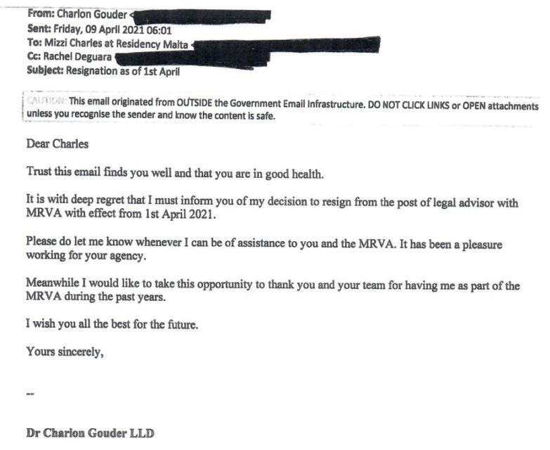 In his email, Gouder thanked Mizzi for the opportunity the agency had given him and offered his assistance, if needed, in the future.