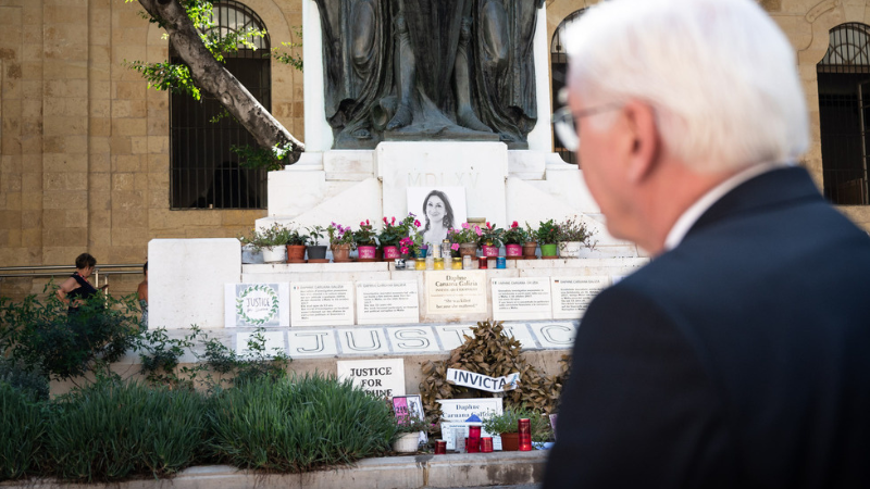 Last October, German President Frank-Walter Steinmeier similarly stopped in Valletta during the Arraiolos Group meeting, hosted by the Maltese government, at the memorial to Daphne Caruana Galizia where he paid tribute to the assassinated journalist.