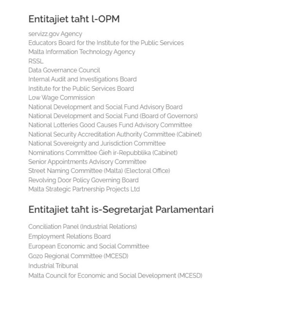 Acknowledging that information on the hundreds of individuals representing the government on its boards and agencies is no longer available, Abela insisted that such information can still be researched through a list of entities available on the website under each ministry.