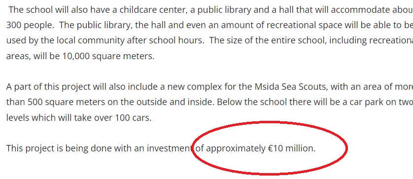 The €17 million project given to Portelli and his associates to top this cost does not further expenses that need to be incurred to provide the school with furniture and specialised educational tools and facilities.