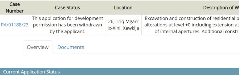 The application’s withdrawal comes after The Shift paid a visit to the site and discovered that construction work was already underway even though the plans were still being assessed for approval by the Planning Authority.