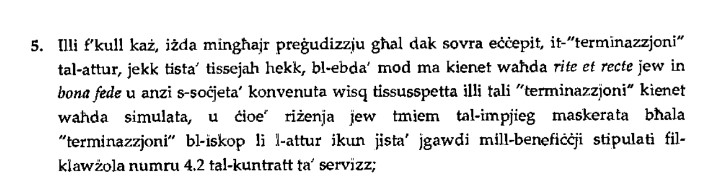 Since the new minister refused to pay any compensation to Jesmond Muscat, arguing that he was not entitled to it, Muscat took the government company to court, accusing it of breach of contract.