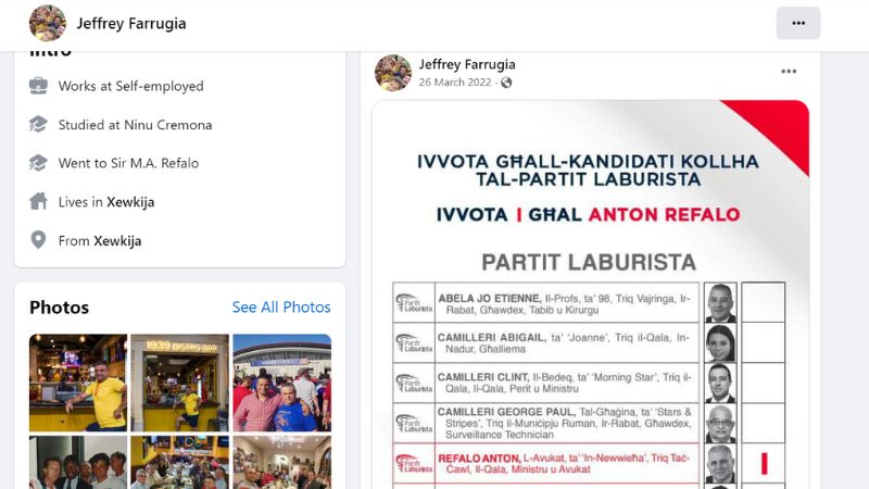 Farrugia has also publicly canvassed for Refalo. The Shift asked Refalo about any personal or political association with Farrugia, to which he replied that there was none.