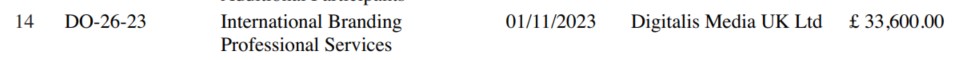 An edition of the government gazette published last week shows a direct order contract of £33,600 (circa. €40,000) awarded to Digitalis Media UK Ltd. at the beginning of November 2023.