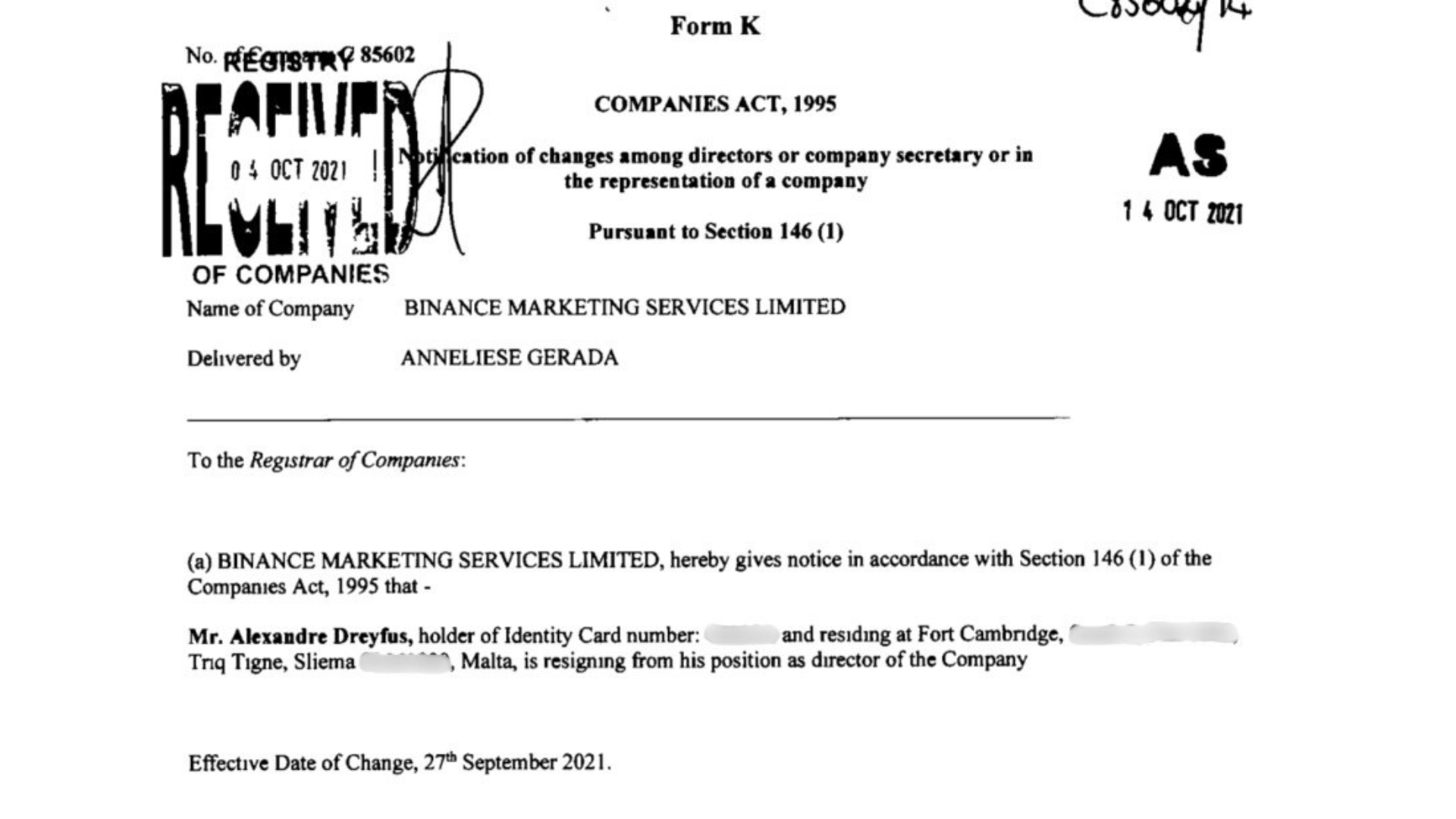 Dreyfus had positioned himself as a director of Binance during the company’s move to Malta in 2018. His companies reportedly also received investments from Binance. He was pictured prominently alongside CZ and Minister Schembri, who was, at the time, the parliamentary secretary for the digital economy.