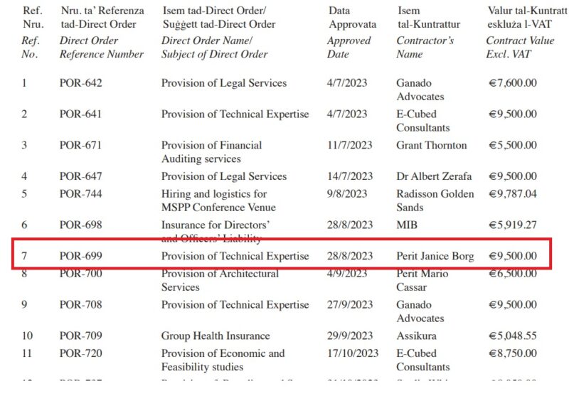 It is not known why, on this occasion, Borg provided the advice privately at an extra cost when it should have been part of her job role at Infrastructure Malta.