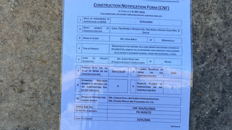 According to the commencement notice of the works, fronted by the prime minister’s wife, Lydia Abela, the excavation work and the eventual construction will be carried out by Elbros – a large construction company owned by Charles Ellul.