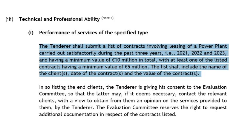 The tender required bidders to have proven experience leasing such power plants over the past three years, with a minimum total value of €10 million.