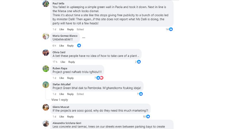 The site seems to have attracted an abnormal number of comments harshly criticising Cuschieri and the government’s greenwashing initiative.