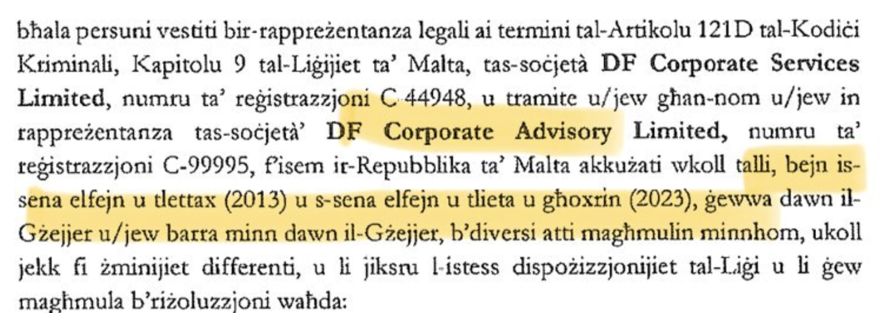 DF Corporate Advisory Ltd is a sister company of DF Advocates, owned by Jean Carl Farrugia and Kevin Deguara. The lawyers provided counsel to Vitals Global Healthcare and Technoline – with those involved also facing charges related to deals struck.