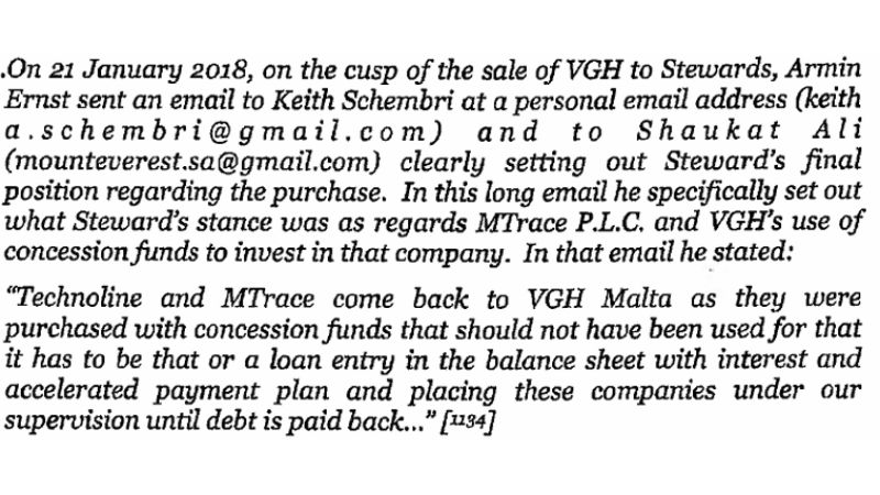 Disgraced former prime minister Joseph Muscat’s chief of staff, Keith Schembri, was kept informed of the progress through Armin Ernst, the CEO of VGH and then Steward Healthcare.
