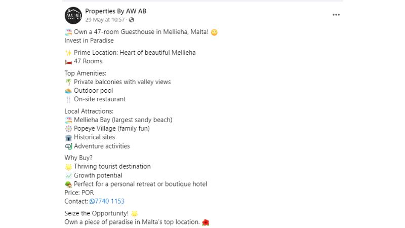 Despite a court ruling last year revoking the permit for the Mellieha building, declaring that the area should never have been used to build a hotel, Portelli and his associates have started advertising the sale of their illegal building for €4.2 million.