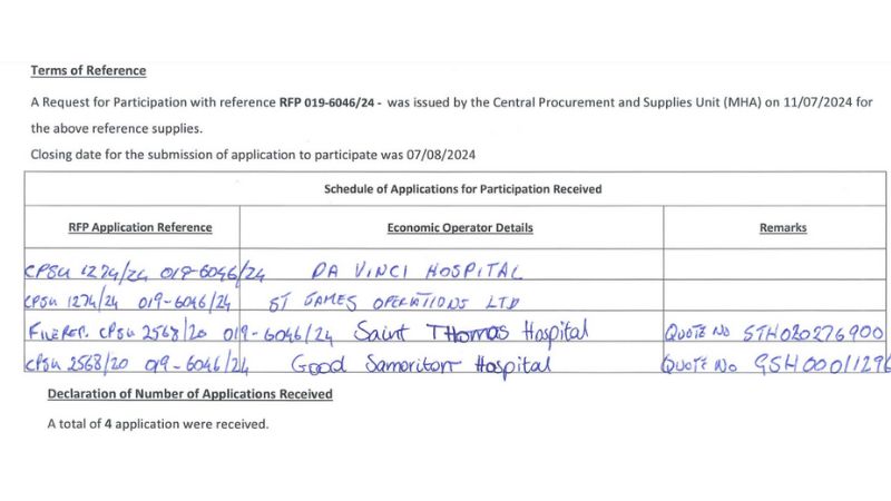 Following the closing of a Request for Proposals (RfP), which the health authorities extended three times, the government received four offers in total.