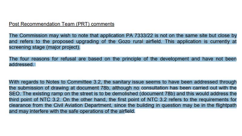 The Authority said the situation had become complicated due to the Gozo Ministry’s application to extend the airstrip.
