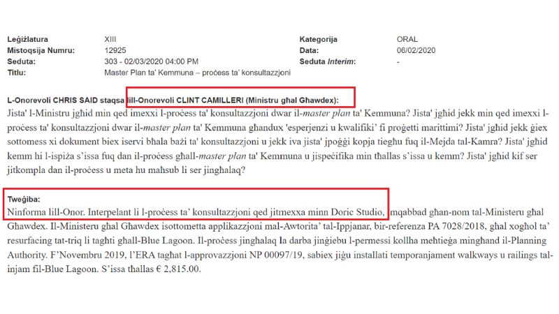 Yet the existence of this master plan was repeatedly confirmed in parliament, even by Clint Camilleri himself, in various parliamentary questions.