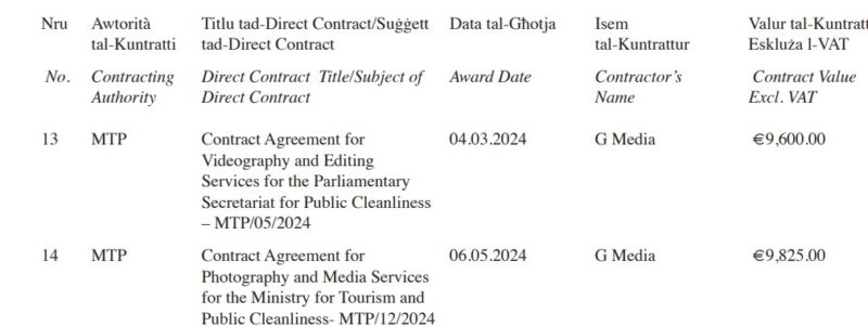 Gareth Degiorgio and his one-man audiovisual company, G Media, were awarded €20,000 in two separate direct orders in March and June 2024 to provide Bedingfield and his boss, Minister Clayton Bartolo, with various audiovisual services for their own public relations.