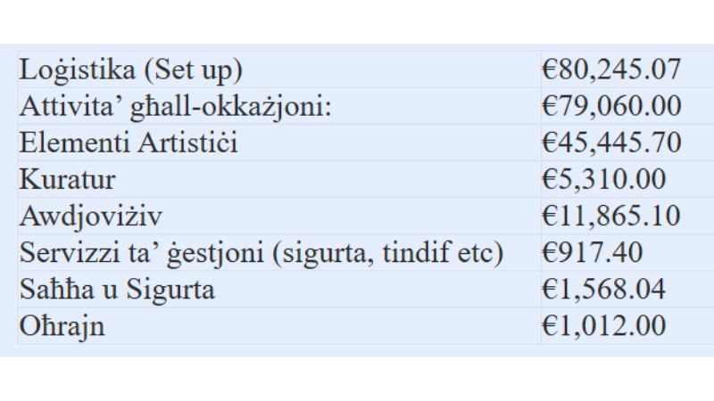 So far, the government has not given details on which contractors benefited the most. When PN MP Bernice Bonello asked Parliament for a breakdown of the expenses incurred for the occasion, Culture Minister Owen Bonnici gave general figures without going into much detail.