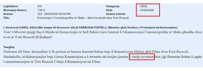 Questions in parliament asked in the past few months, especially by PN MPs Julie Zahra and Karol Aquilina, have led to no answers. The government has declined to disclose how much international film producers are paying to lease Fort Ricasoli, who is responsible for collecting these payments, and what happens to the funds once collected.