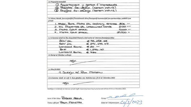 The last published declarations had raised serious questions about their veracity. For example, questions were raised about Robert Abela’s declaration and whether he was using undeclared assets held by his wife Lydia to pay for property acquisitions without declaring them as required.