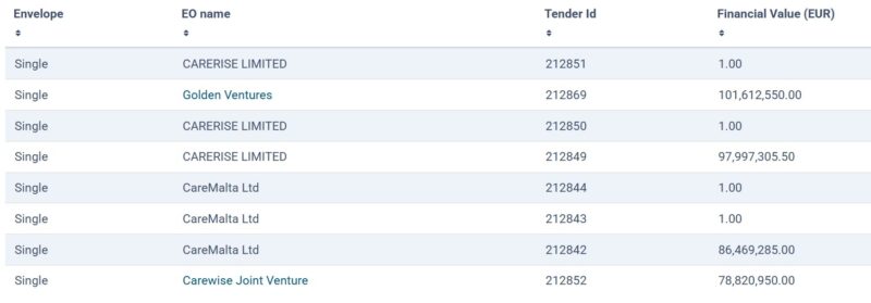 Vassallo Group’s Care Malta, which had run the same home for decades, submitted the second-lowest bid at €86 million. This is followed by €98 million bid from Carerise Ltd, co-owned by the Labour deputy mayor of Naxxar, Mario Brincat.