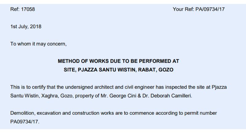 Just a few weeks after the permit was issued, Architect Godwin Agius sent a letter to the Planning Authority, revealing that part of the building to be developed by il-Ġigu was owned by Dr Deborah Camilleri and George Cini, known as ir-Rixu, and a canvasser of Minister Camilleri.