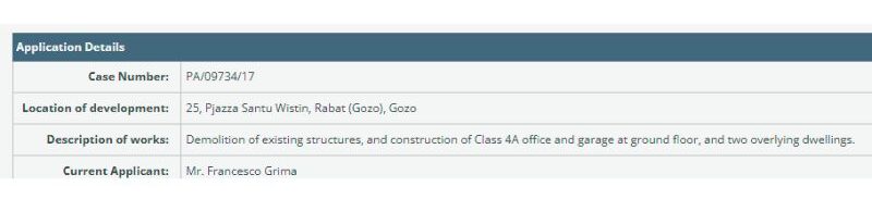 Once an old small corner dwelling, Francesco Grima filed a PA application—09734/17—through his architect, Godwin Agius, in September 2017.