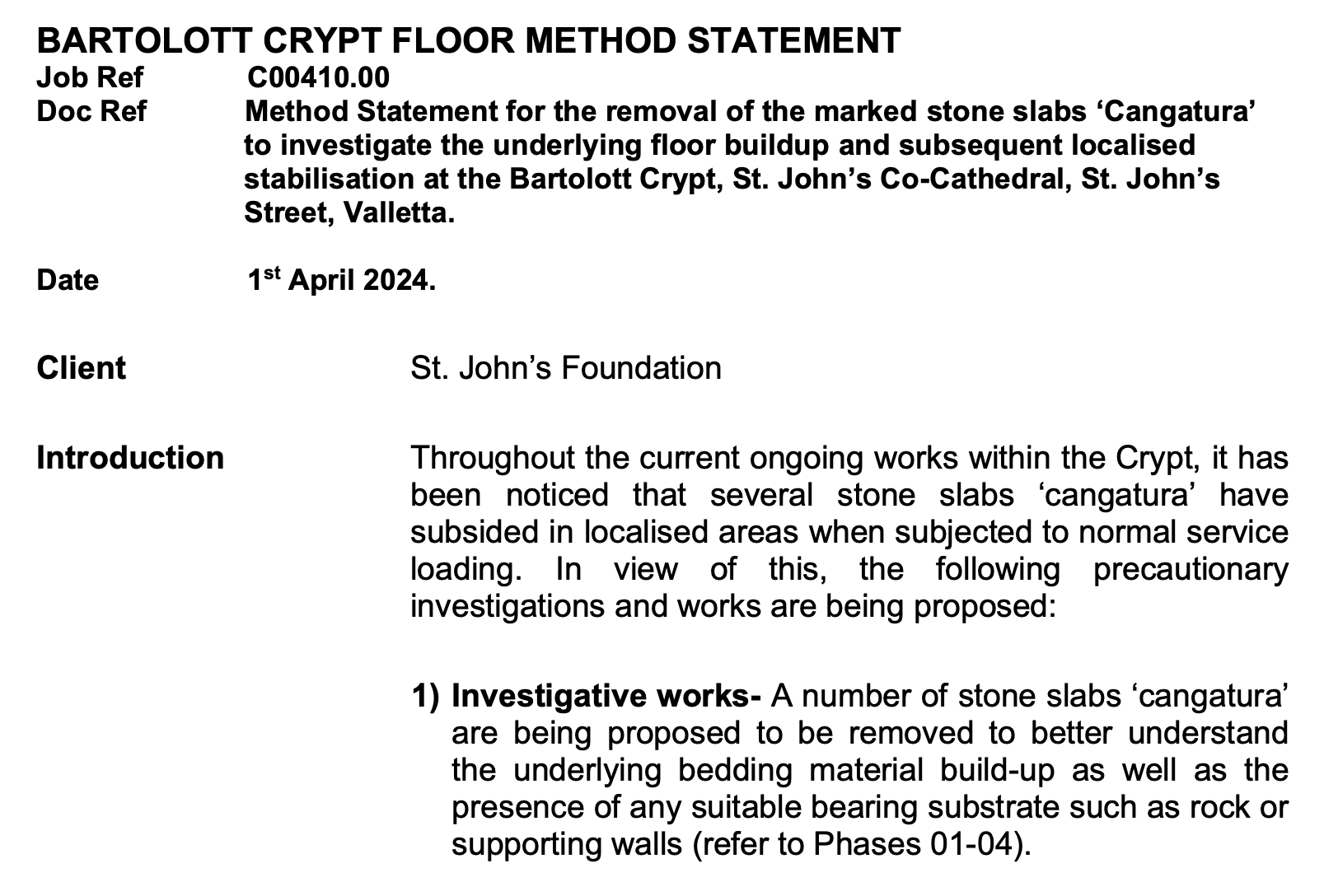 Ir-rapport li The Shift qed jippubblikah kollu kemm hu, jikkonferma l-ħsarat gravi li ġraw liċ-ċangaturi antiki ħafna tal-kripta wara li ġiet installata struttura tqila li televa l-art.